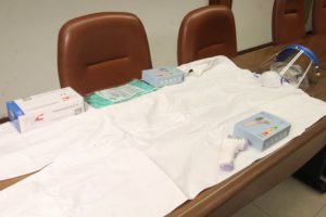 Lunes 6 de abril 2020. 4:40 p.m. (Nora Hernández).- El Gobierno Municipal de Apodaca recibió por parte del Club Rotarios de Monterrey equipo de protección personal para la instalación de un módulo de evaluación contra el Coronavirus.