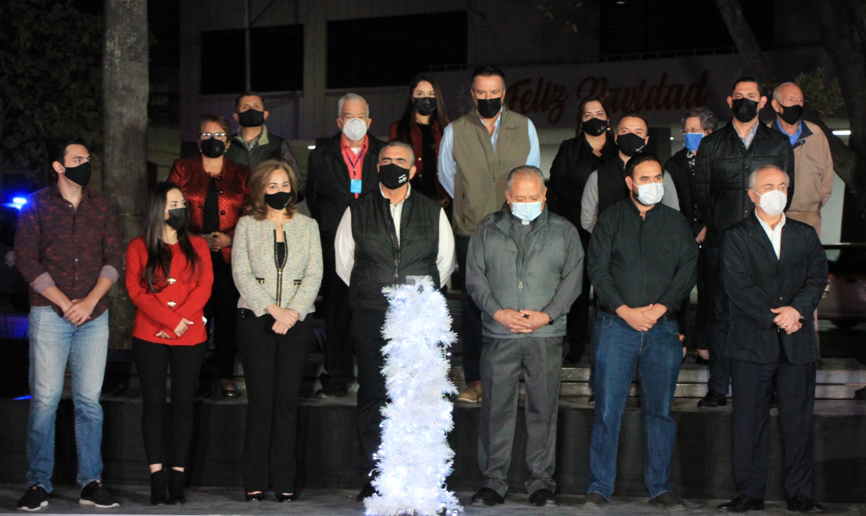 En compañía de funcionarios y su familia; Carmen Arredondo de Garza, Presidenta del DIF Apodaca y César Garza Arredondo, dirigente de la Red de Jóvenes X México del PRI NL, el Presidente Municipal realizó el conteo para encender el enorme pino de Navidad, que marca el inicio de esta temporada tan especial.