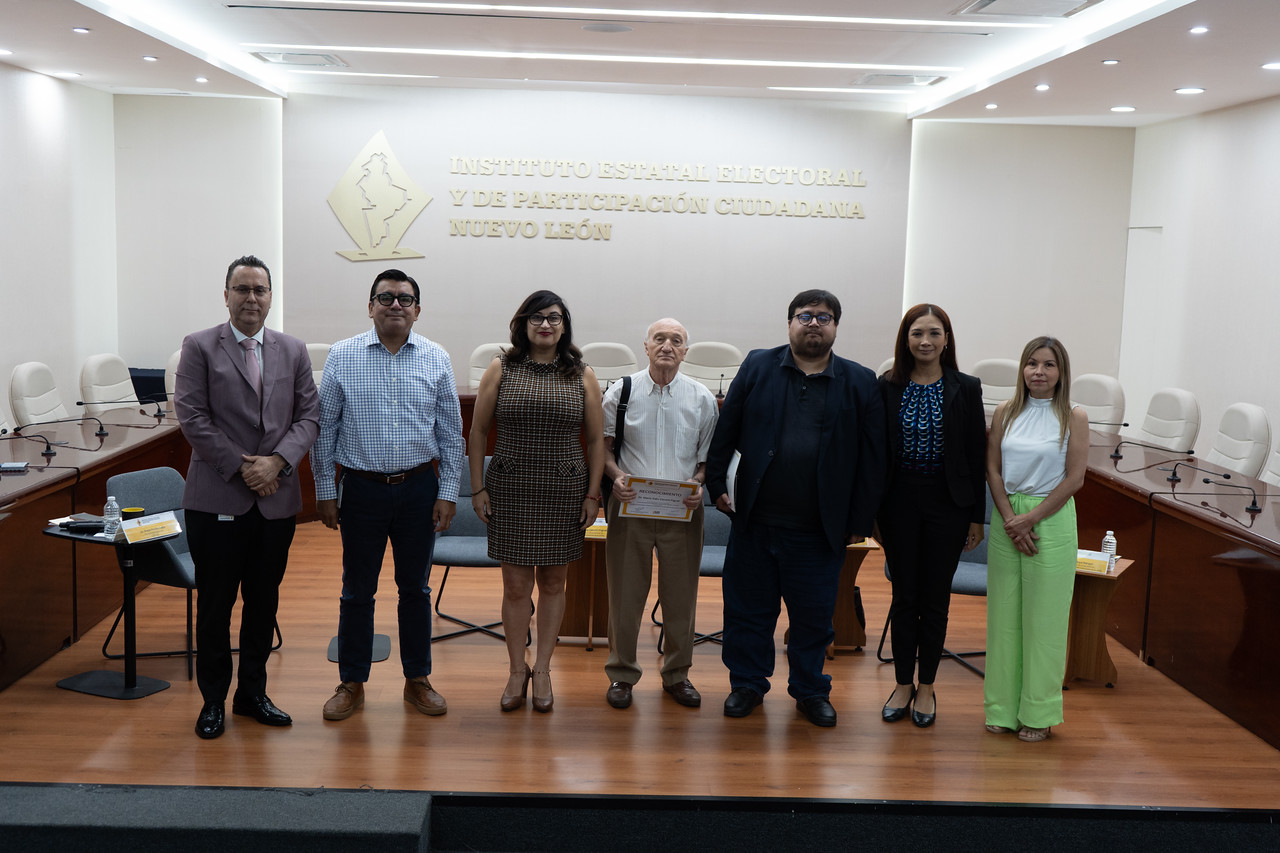 Para concluir el evento, Cennti Pignat, Castillo Olivares y Bedoya Rangel, recibieron un reconocimiento por sus aportaciones de parte de Rosiles Mejía y del Consejero Electoral del IEEPCNL, Carlos Alberto Piña Loredo.