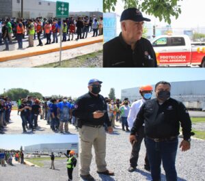 Además del encendido de alarmas sonoras, coordinación de rutas de evacuación correctamente; instaladas sin correr, empujar y en calma hasta conducir a los trabajadores hasta los puntos de reunión, donde contaron con el apoyo y observación de elementos de Protección Civil de Apodaca.