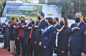 En el evento estuvieron presentes algunos exalcaldes, diputados locales y federales, secretarios y directores del municipio y miembros del Cabildo, así como autoridades educativas y alumnos de la Secundaria 3 Profr. Moisés Sáenz Garza y Secundaria 10 Aarón Sáenz Garza.