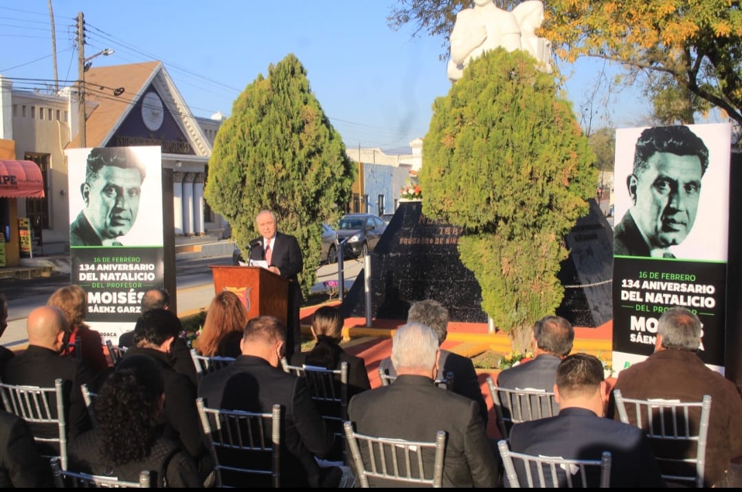 Reconoció que Moisés Sáenz Garza se constituyó como el fundador e impulsor del sistema de segunda enseñanza, a través del cual nuestro país articuló sólidamente el Sistema Educativo Nacional, dándole al pueblo mexicano la opción de un mejor destino a través de la educación.