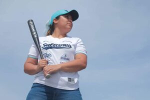 A los siete años jugó por primera vez el deporte en el que ha dado un batazo imparable al convertirse en una de las jugadoras de Sultanes Femenil de la primera Liga Mexicana de Softbol.