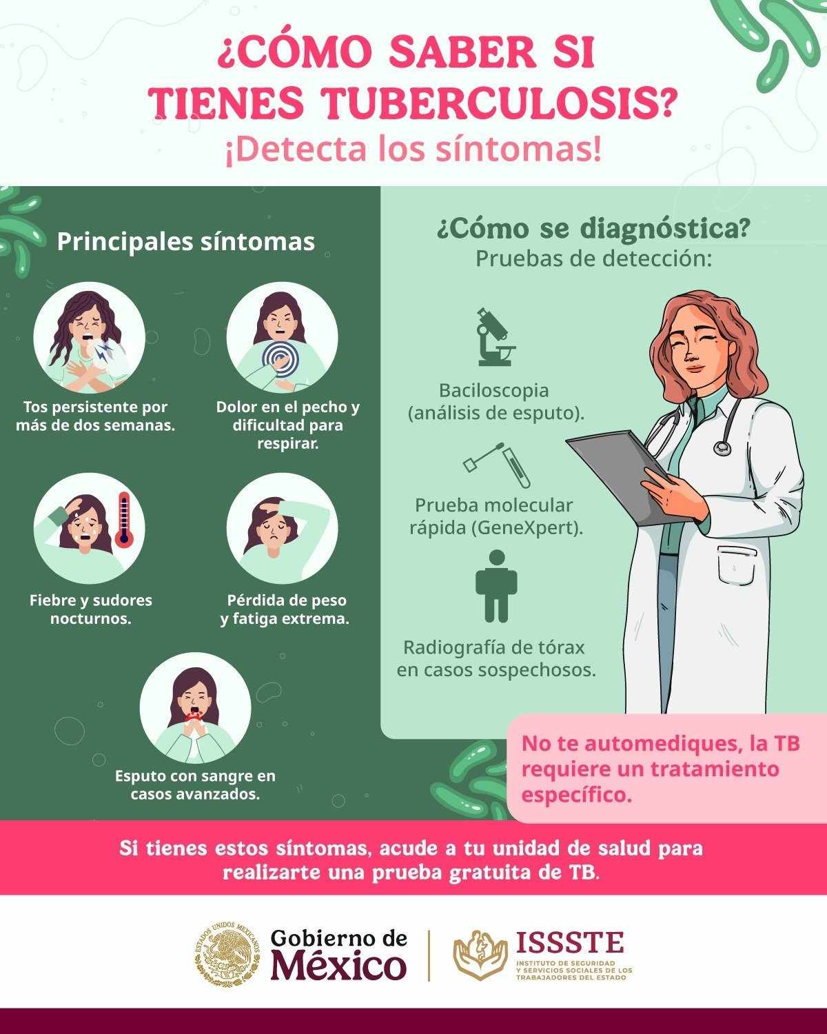 ● El ISSSTE tiene un protocolo de atención para derechohabientes con este padecimiento, que incluye la detección y diagnóstico de la enfermedad, así como el tratamiento con medicamentos antituberculosos y el monitoreo respectivo del paciente