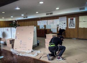 Todavía en presencia de Marx Arriaga, quien se negaba a abandonar el lugar, personal de la SEP armó cajas de cartón afuera de la oficina del ex titular de departamento, empacando objetos para comenzar el desalojo, sacando las pertenencias del ex funcionario en un carrito.
