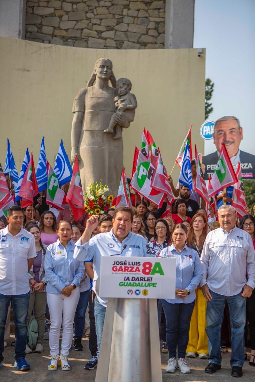 En el marco del Día de las Madres, y al pie de su monumento en la Colonia Libertad, donde colocó una ofrenda floral, José Luis Garza Ochoa, candidato a la Alcaldía de Guadalupe por la coalición Fuerza y Corazón X Nuevo León, firmó un compromiso con ellas en temas de empleo, seguridad y apoyo económico.