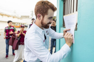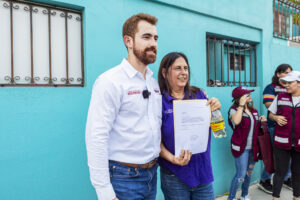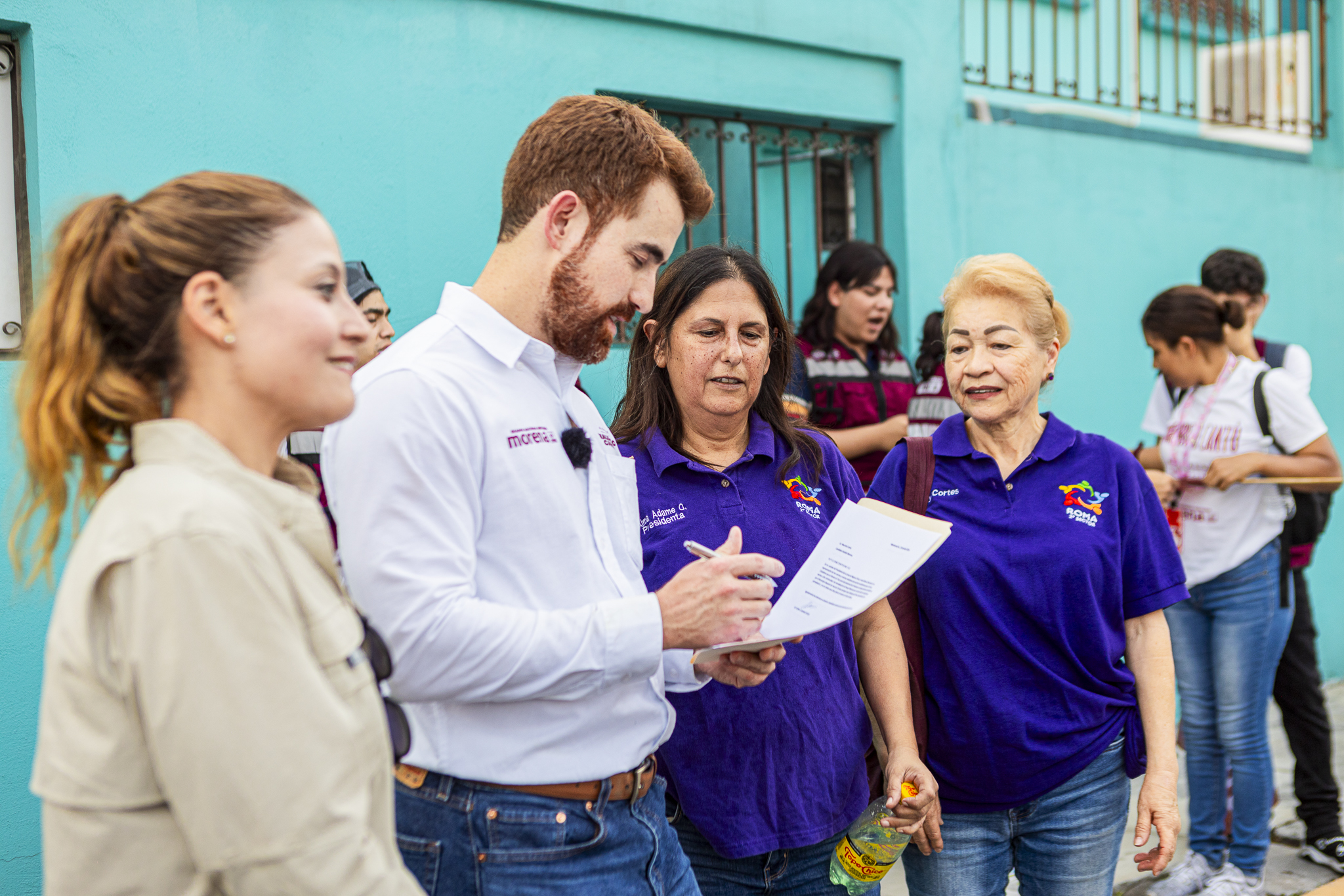 Durante su recorrido por la colonia Jardines Roma, Mauricio Cantú firmó su primer