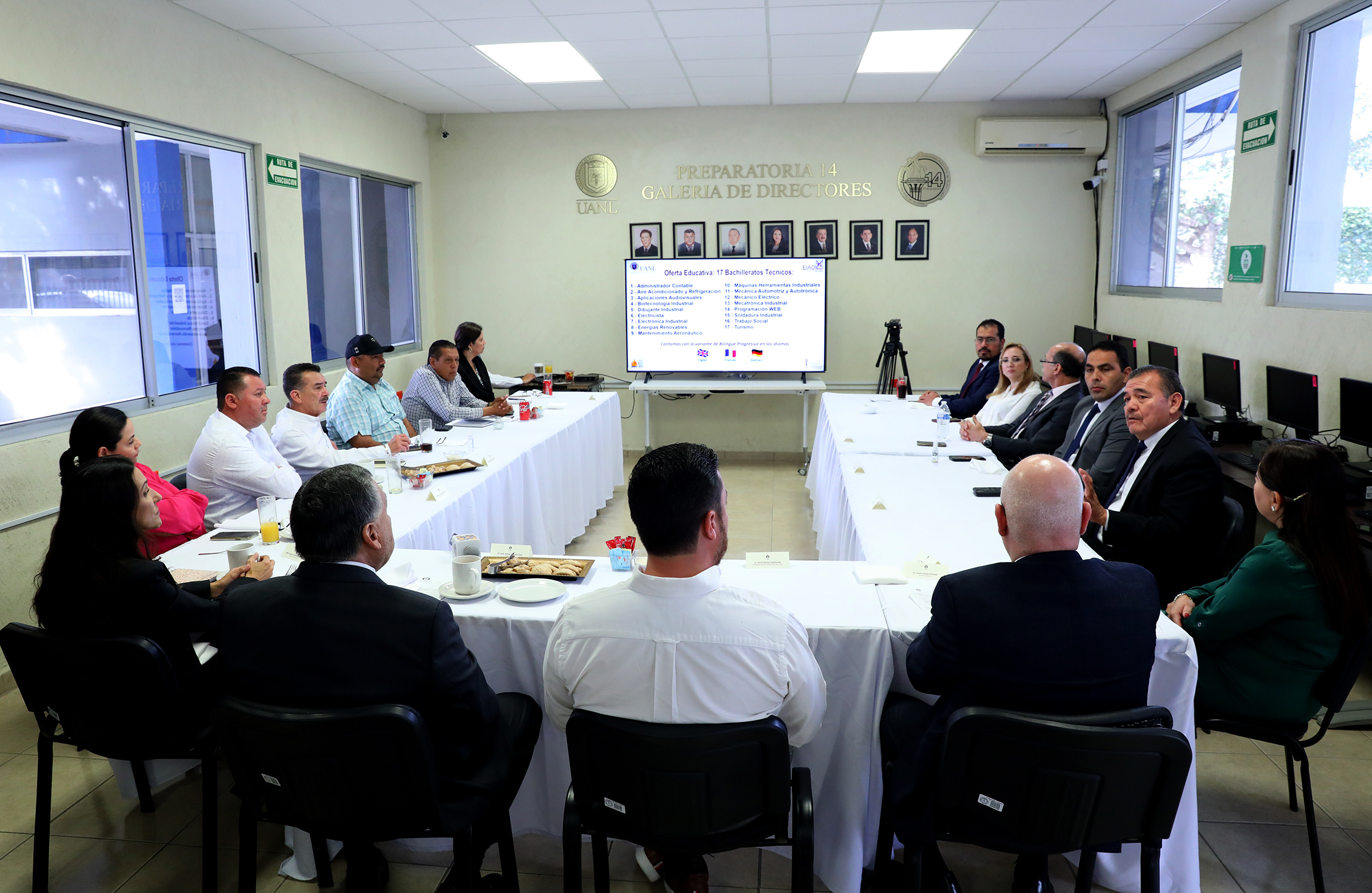 Durante el encuentro estuvieron presentes el Secretario Académico, Jaime Arturo Castillo Elizondo; la directora del Sistema de Estudios del Nivel Medio Superior, Sandra del Río Muñoz, y la anfitriona Aurora Carolina Gómez Treviño, directora de la Preparatoria 14 de la UANL.