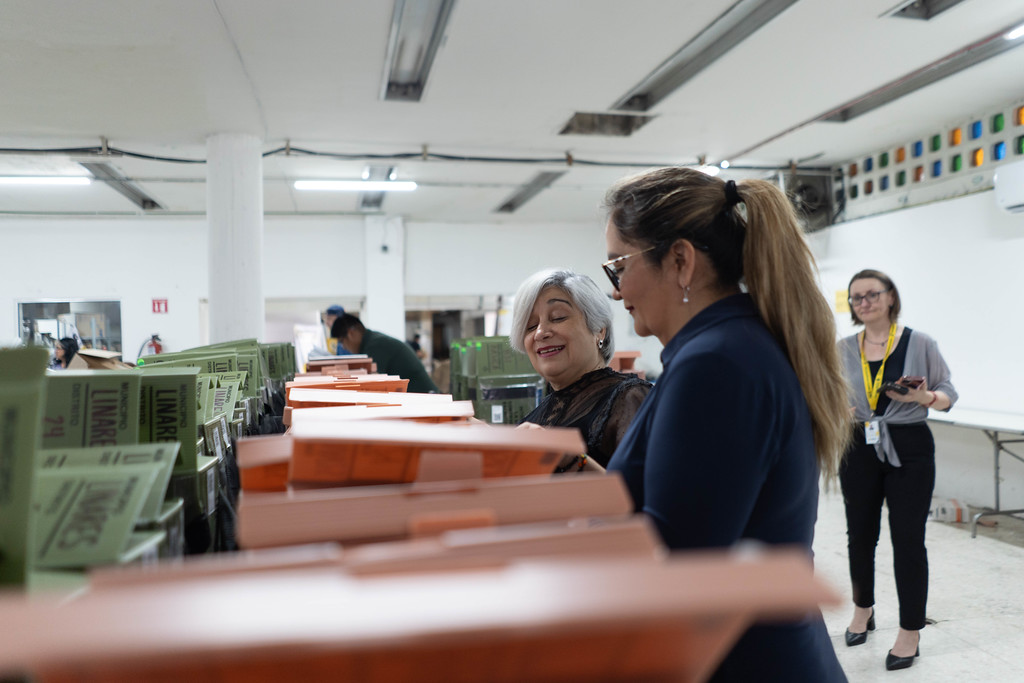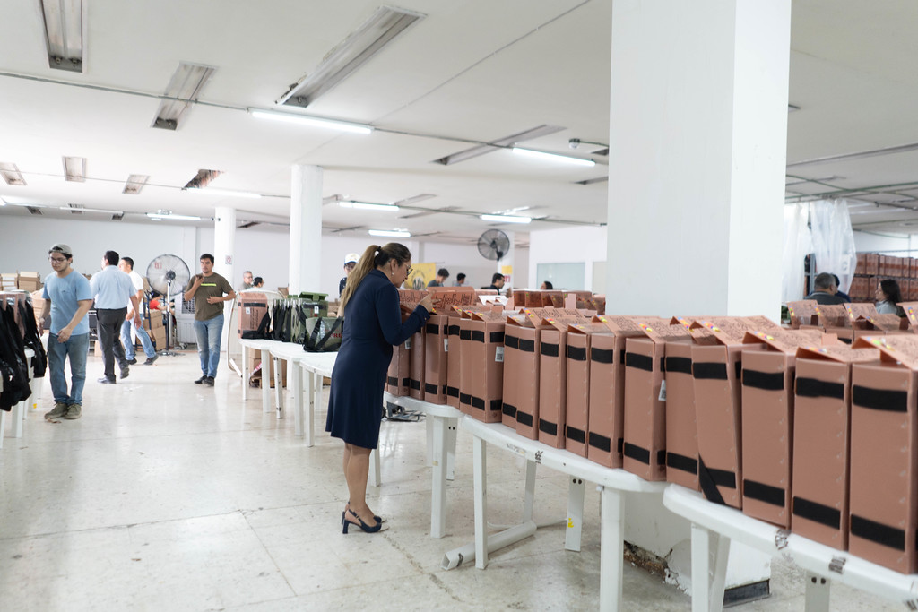 La Consejera Presidenta del IEEPCNL, Beatriz Camacho Carrasco; las Consejeras Electorales, María Guadalupe Téllez Pérez, y Martha Martínez Garza; el Consejero Electoral, Carlos Piña Loredo; el Secretario Ejecutivo, Martín González Muñoz; y el Director de Organización y Estadística Electoral, Ricardo Chavarria de la Garza, supervisaron la entrega de estos paquetes en la bodega del Instituto, este 23 de mayo.