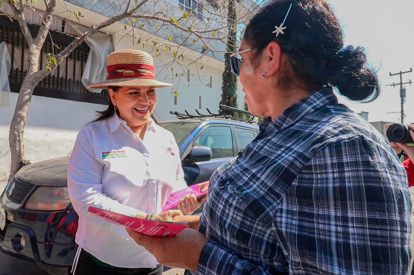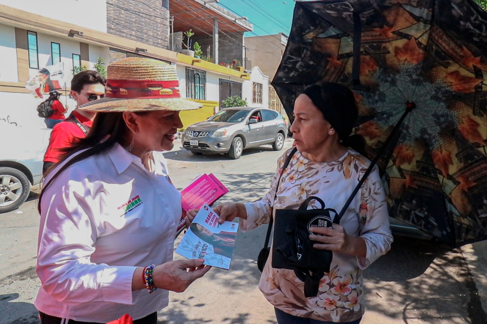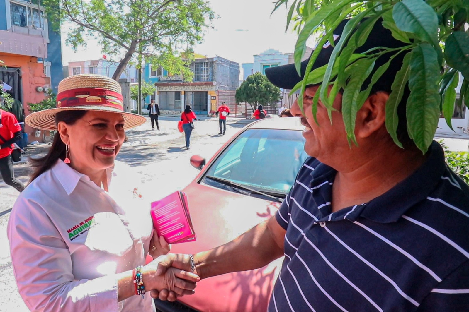 En un ambiente colorido Andrés Cantú recorrió las calles de un sector de la colonia Pueblo Nuevo, mientras que María de Jesús Aguirre visitó a los vecinos de la colonia Misión de Huinalá.