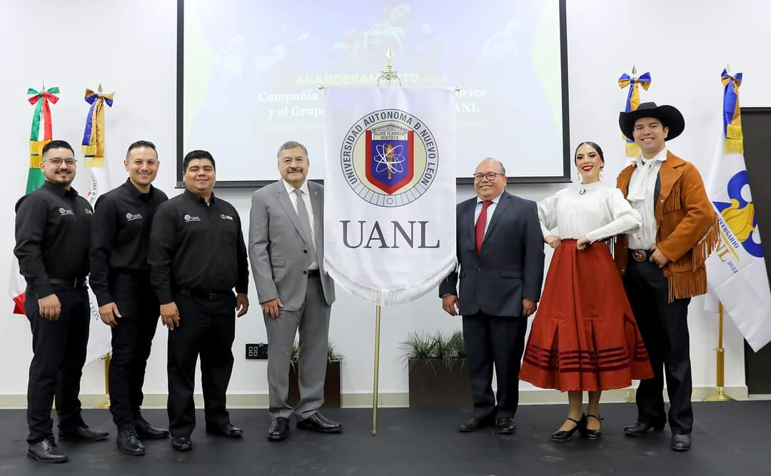 Durante la ceremonia de abanderamiento, Guzmán López entregó el emblema de la UANL a los maestros Alejandro González Herrera y Juan Ángel Gutiérez Macías, directores de la Compañía Titular de Danza Folklórica y Pico de Gallo, respectivamente, acompañados por bailarines y músicos de ambas agrupaciones. Atestiguó el Secretario de Extensión y Cultura de la UANL, José Javier Villarreal.