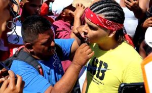 La «Agencia Reuters», compartió fotografías de docenas de migrantes cosiéndose la boca frente a la Subdirección de Regulación Migratoria Zona Sur, en Tapachula y en las imágenes se puede observar que uno de los participantes de la protesta, que afirma llamarse Ricardo Vargas, dice que quieren transitar libremente por México: «Nosotros queremos pasar y ser libres”, advierte. R/90