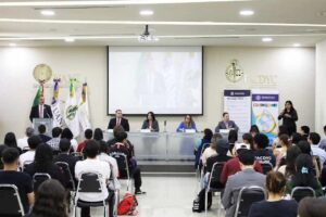 Posteriormente se entabló una mesa de diálogo con alumnas y alumnos de la facultad, moderada por la Dra. Laura Nelly Medellín Mendoza, quien funge como Directora de Investigación de la mencionada Facultad.
