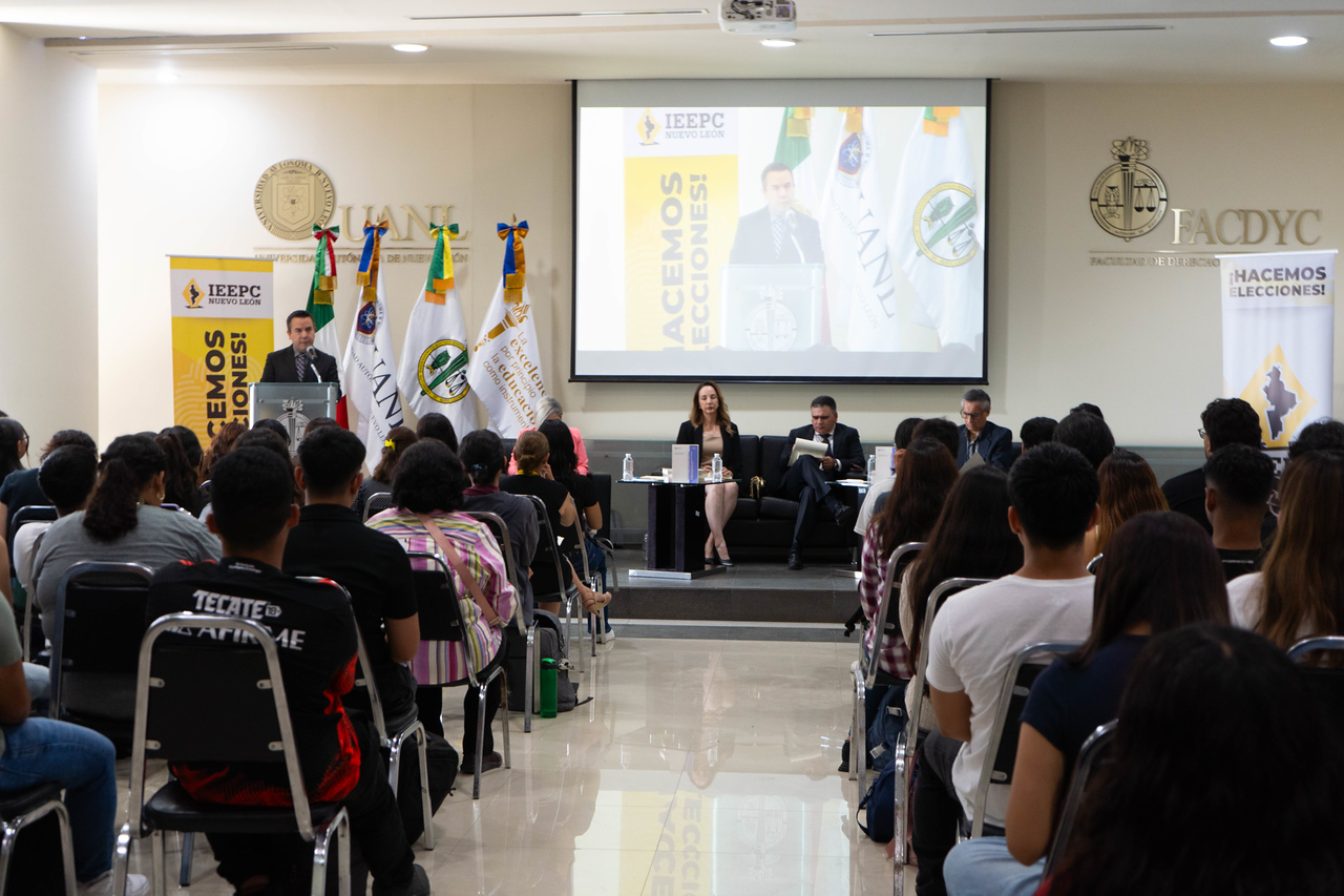 El Instituto Estatal Electoral y de Participación Ciudadana de Nuevo León (IEEPCNL) presentó el libro: Sistema político-electoral en Nuevo León. Elecciones y efectos en el sistema de partidos políticos (1979-2018), ante alumnado de la Facultad de Derecho y Criminología (FACDYC) de la Universidad Autónoma de Nuevo León (UANL), este 28 de agosto.