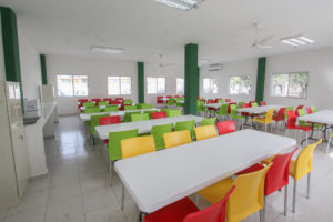 El Alcalde, agregó que los comedores que están completamente equipados con clima, abanicos, sillas, mesas, barra de concreto forrada de azulejo y tarja, dos abanicos de techo, ventanas de aluminio y protectores, piso cerámico y zoclo, dos accesos incluido salida de emergencia, permitirán que los alumnos coman en condiciones cómodas y salubres.