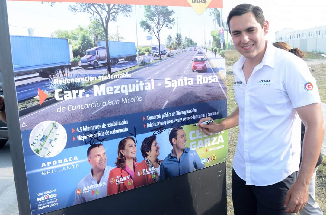 “La vamos a reconstruir desde los límites de Apodaca con San Nicolás hasta Concordia, estos son 4.5 kilómetros lineales, seis carriles que tiene tres de cada lado, los vamos a arborizar, le vamos a meter banquetas mejorar por supuesto la calidad de la carpeta asfáltica” precisó el candidato.