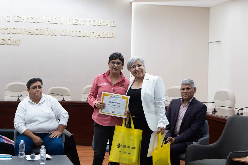 En el evento estuvieron las Consejeras Electorales del IEEPCNL, Martha Magdalena Martínez Garza y María Guadalupe Téllez Pérez; y el Secretario Ejecutivo del organismo, Martín González Muñoz.