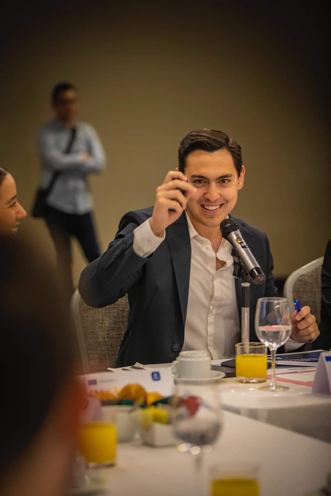 Ante el consejo de empresas encabezado por Rubén Darío Rodríguez, Presidente del Consejo de CAINTRA, de Jesús Francisco López, Director de Relaciones Institucionales de CAINTRA y de Pilar Sánchez Rodríguez, Gerente del Voluntariado de CAINTRA, Garza Arredondo, abanderado del PAN, PRI y PRD explicó su proyecto de vialidades estratégicas.