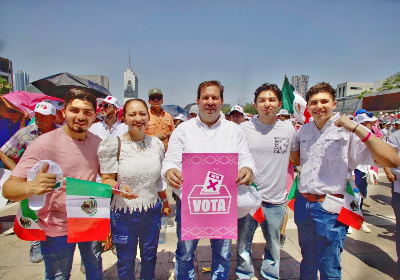 Monterrey, México (19 mayo 2024). – El candidato a la alcaldía de Guadalupe por la Coalición PRI, PAN y PRD, José Luis Garza Ochoa, se sumó hoy a los miles de nuevoleoneses que se manifestaron en forma pacífica con una Mega Concentración cívica en apoyo a la candidata a la Presidencia de México por la coalición Fuerza y Corazón por México, Xóchitl Gálvez y a la democracia en México.