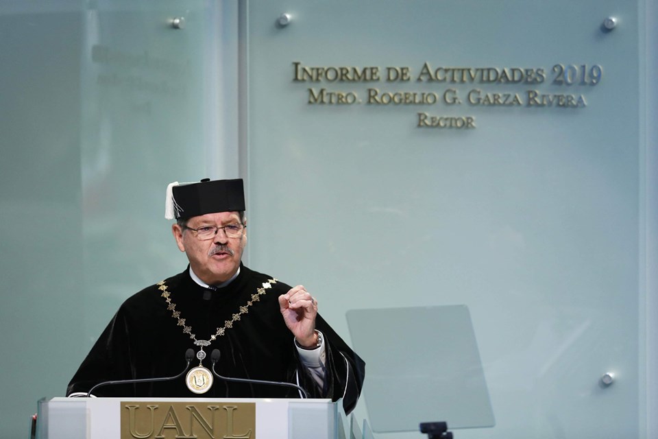 El Rector Rogelio Garza Rivera rindió el 24 de octubre el informe de actividades 2019 de la Universidad Autónoma de Nuevo León . Destacó que, por segundo año consecutivo, es la institución de educación superior más sustentable de México
