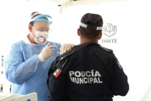 Con la presencia de la delegada y el subdelegado del ISSSTE en Nuevo León, Cynthia Gabriela González y Víctor Alejandro Morales, respectivamente, se aplicó la vacuna a policías, tránsitos, barrenderos, pintores, jardineros, personal de mantenimiento, administrativo y atención al ciudadano.
